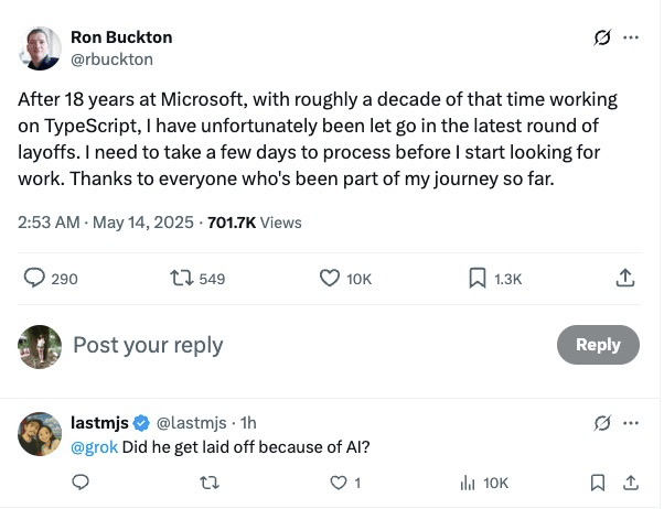 不少网友在 X 上表达了不解和惋惜。许多人原以为这轮裁员主要针对的是非技术岗位或中层管理人员,却没想到连这样一位为 Type 项目深耕近十年的资深工程师也未能幸免。
