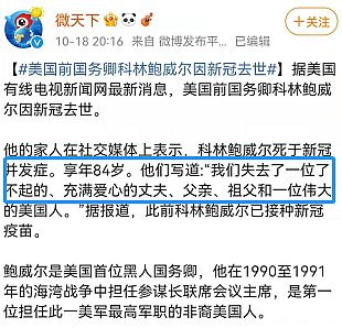 这两年,美国疫情死人早就不是新闻了,或者说,大家都麻木了,好像美国就该死人一样,但鲍威尔的死还是让人感到后背发凉。