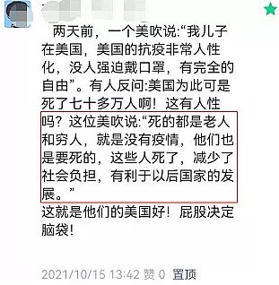 好在,美国人的命在公知眼里不值钱。对公知来说,理由总是有的。有公知就说,“死的都是老人和穷人,就是没有疫情,他们也是要死的,这些人死了,减少了社会负担,有利于以后国家的发展”。请注意,这么说的公知绝不是一个两个,而是一批一批的。